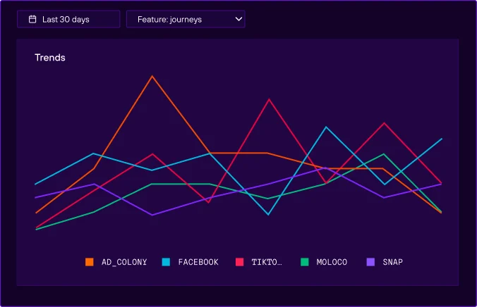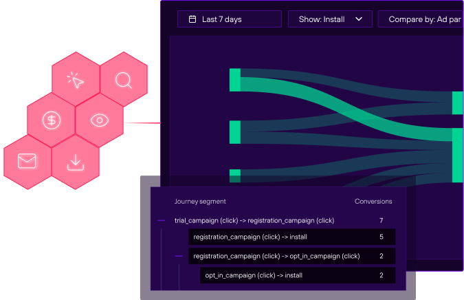 From views to conversions, see the complete picture. Track every twist, turn, and branch-out in your funnel. Slice by campaign, device, OS, or any dimension that matters. Know exactly where Banners drove value and where revenue actually came from.