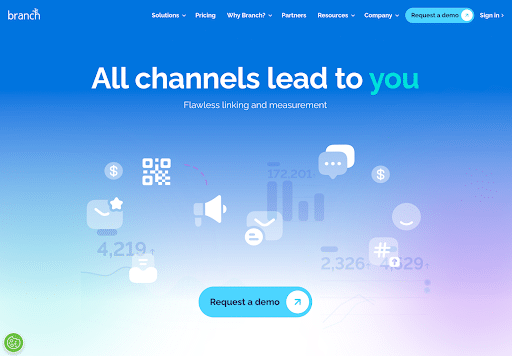 Alt. Text: Branch homepage showing cross-channel attribution dashboard (Source)