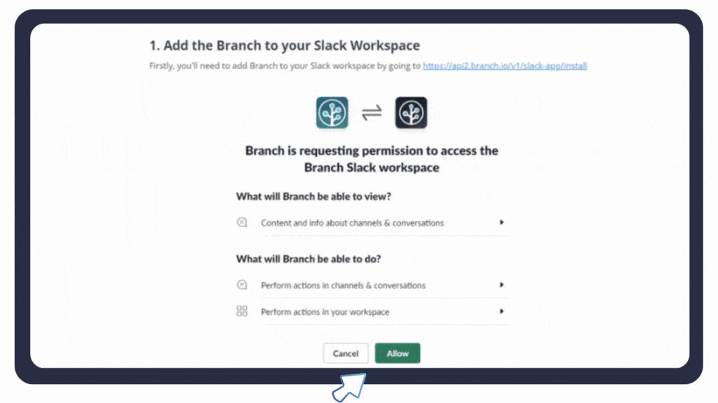 Now that you know what the Branch Slack app does, it’s time to add it to your Slack workspace! We provide a simple, five-step process to get you up and running.