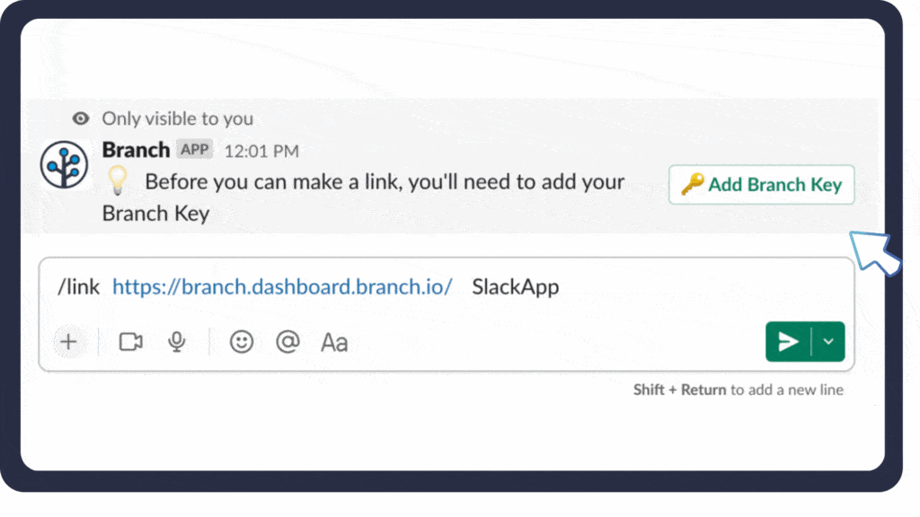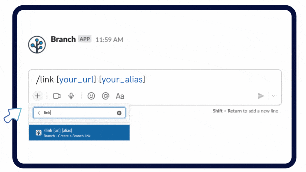 Quickly create Branch links right from your Slack workspace. Simply type /link in any Slack chat to generate and share your link with ease.