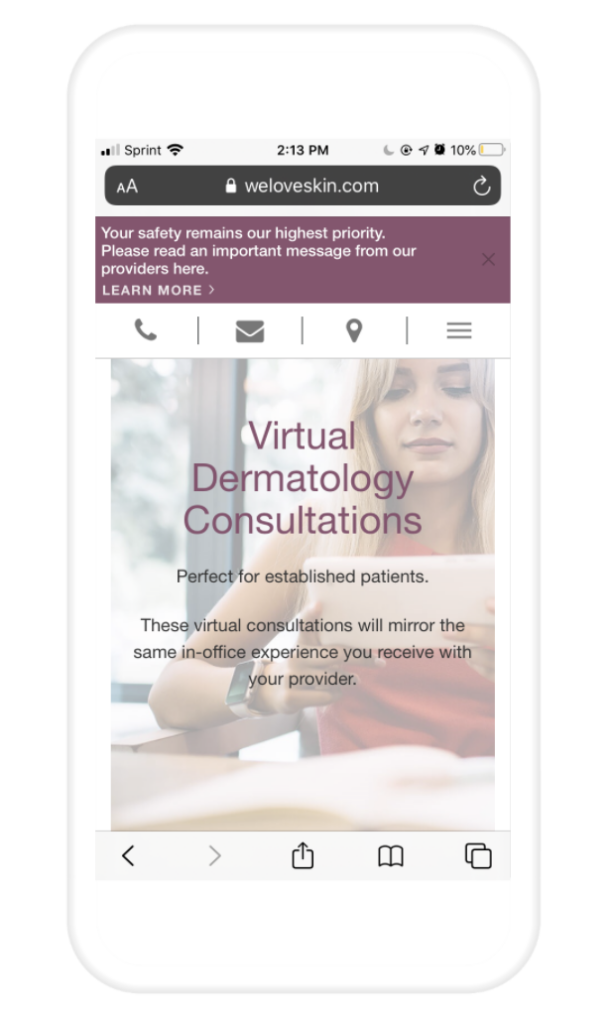 For example, this dermatology clinic is offering virtual consultations for patients without compromising the quality of service or care they provide to patients: