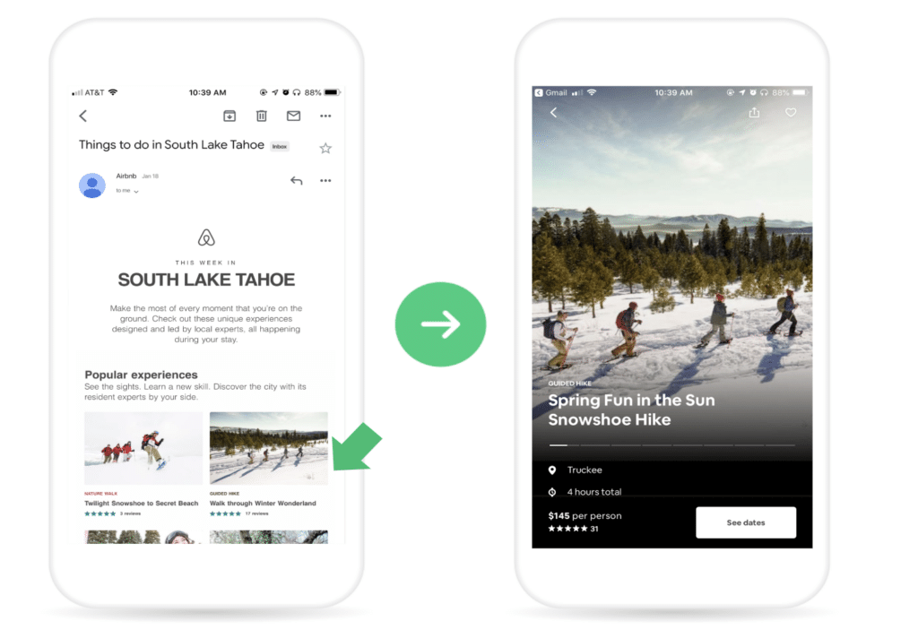 Another platform from which you can offer users a smooth transition into your app is email. 70% of emails are opened on mobile devices, which means your email campaigns need to be mobile-friendly — but this also means email is a great channel for app engagement. With Branch’s Universal Email solution, you can take users from email promos directly to the correct in-app content. The result: improved user experience, more app usage, and more conversions. In addition, Universal Email provides you with email-to-app data, which allows you to compare all of your email campaigns across devices and platforms.