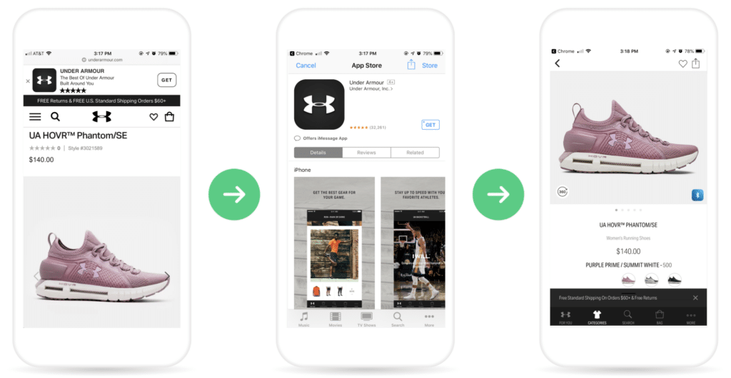 Make it easy for users who already have your app to navigate back to it. A way to do this is to make your mobile website a source to encourage users to go back to the app with Branch’s Journeys. Journeys allow you to deliver fully customized smart banners that are personalized to a user’s unique experience. For example: you can display a minimalist banner or a full-page interstitial on your mobile site to users who already have your app installed to offer a seamless pathway to that same content within the app.