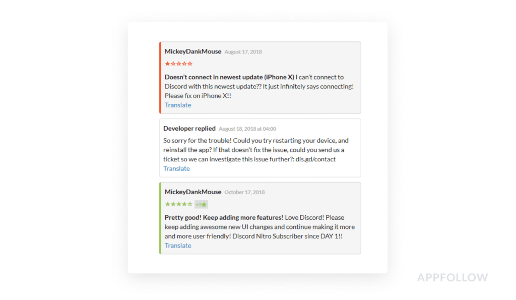 Make sure you promptly reply to customer reviews on the app store. Assure users that your team is working on bugs and empathize with their frustration. And make your response is personal — address customers by their names, and directly reference the issues they mention. Response to customer complaints shows you care and gives users a reason to keep using your app rather than uninstall. But don’t stop there! You should also respond to satisfied customers to thank them for their business.