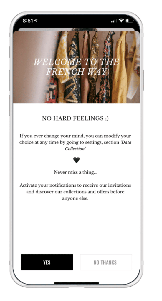 Macy’s explains to users how their data is used — to be able to suggest products they’ll love. By tying value and a tangible benefit back to data sharing, Macy’s focuses on providing users the best shopping experience and makes their ask sound less daunting.