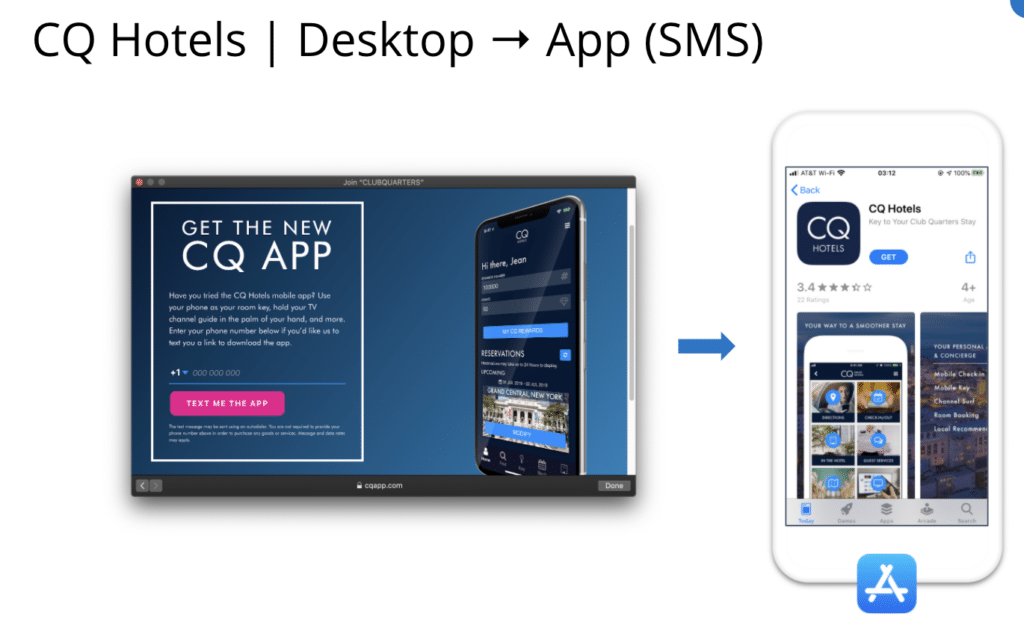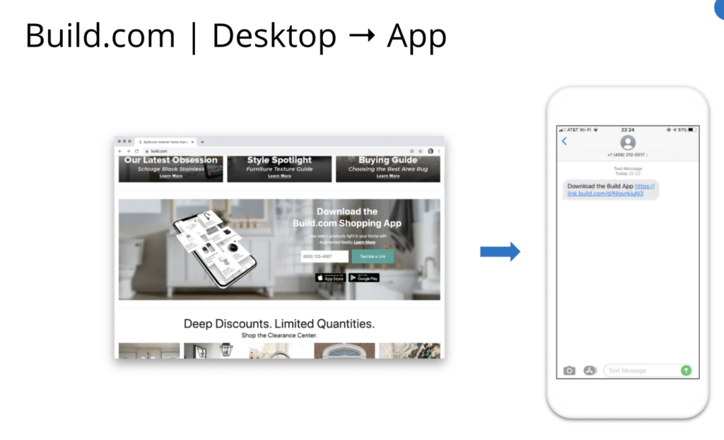 That’s why, during these times, investing in cross-platform experiences is even more important, specifically converting desktop web users to mobile app users. One way to do that is through text me the app pages or banners that allow a user to text themselves or a friend a link to the in-app content they are browsing. Here are some examples of how companies are doing it below: