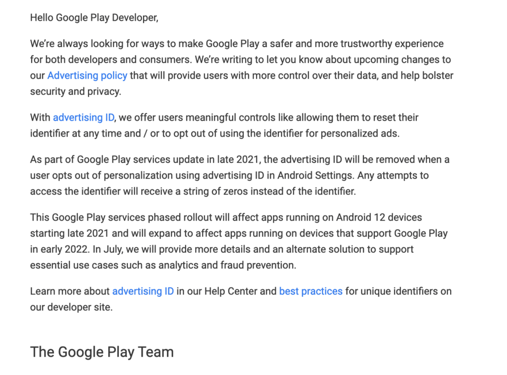 Yesterday, Google shared an email update with developers about upcoming changes to the Android Advertising ID, also known as the GAID:
