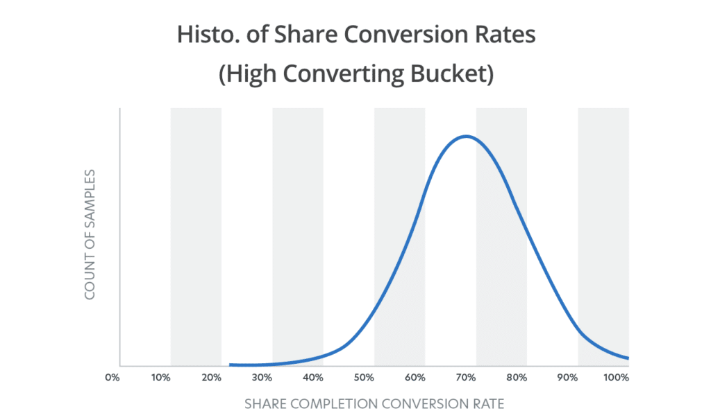 Case in point: Incentivized referrals have very high returns and increase the likelihood for users to convert. As seen in the histograms below, the “high converting bucket” made up of incentivized referrals had an average conversion rate of 70%. In comparison, the “lower converting bucket” consisting of non-incentivized referrals had an average conversion rate of 30%. As a bonus, providing incentives increases a brand’s perception of being a giver, especially in a time when giving to your users is more critical than before.