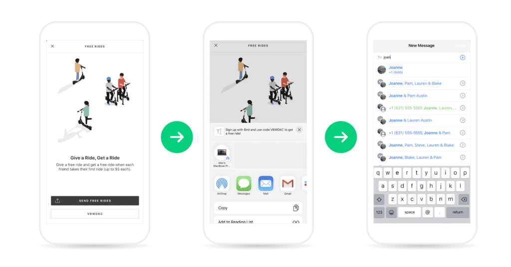 Above, you see the example flow from the Bird referral program. They offer double-sided incentives if you complete the share, as is common among high converting flows.