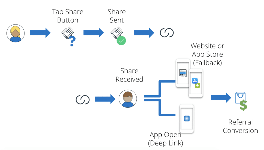All referrals start with the original user who shares the link. As the referral funnel starts, you can see two important steps: