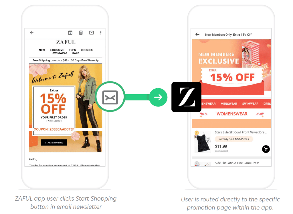 In the example above, ZAFUL integrated Branch links into their email campaigns and saw revenue from email marketing grow by 210% as a result, alongside increased engagement.