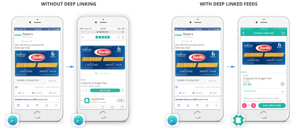 Dynamic Ads are Branch’s latest powerful tool for mobile marketers. Dynamic Ads allow apps to send web users directly to in-app product pages, where conversions and purchase rates are higher than those in the mobile web. Branch links ensure a user is taken straight to the desired in-app content, even through the install process.