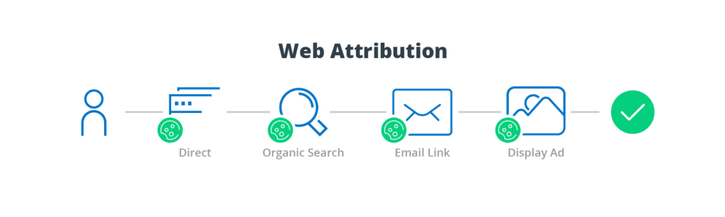 Web attribution was possible because of tools that captured certain user behaviors and tied them to that user’s browser cookie—an attribution option still available today. In other words, cookies are used as unique user identifiers in web attribution. Cookie-based web attribution allows marketers to reliably track traffic sources to their websites, conversion rates by source, and other measures of user activity.