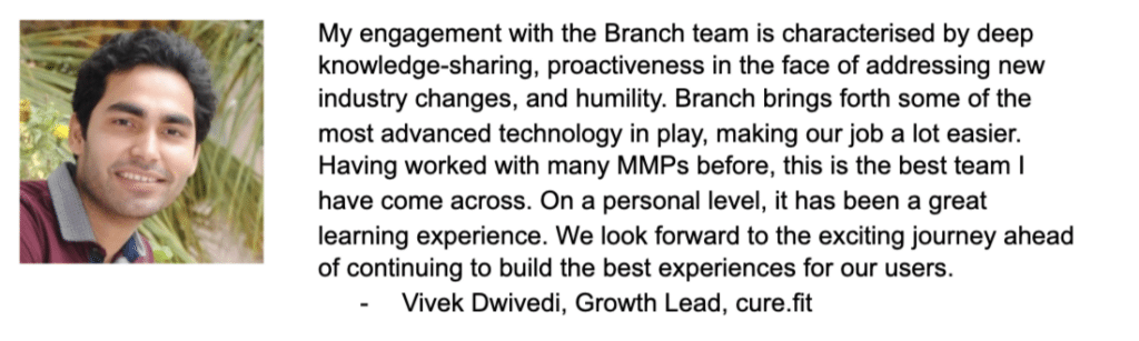After ensuring cross-platform user experiences, cure.fit measures their marketing efforts using Branch’s attribution solution to connect touchpoints from every channel with conversions on any platform.