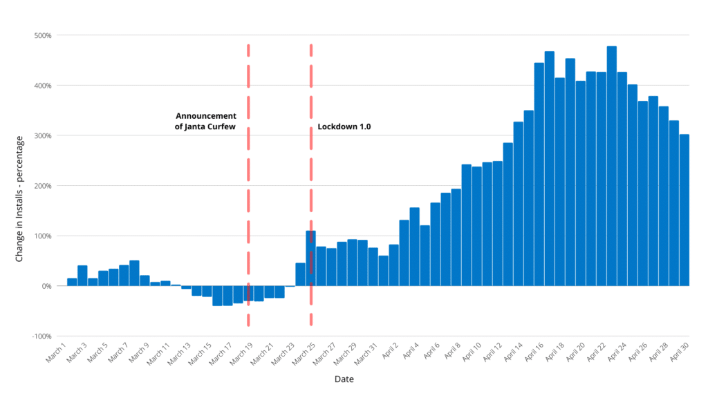 With pre-COVID installs as the benchmark, cure.fit’s app growth experienced a minor slump as a result of the lockdown but made a quick comeback with a remarkable increase in installs in the following months.