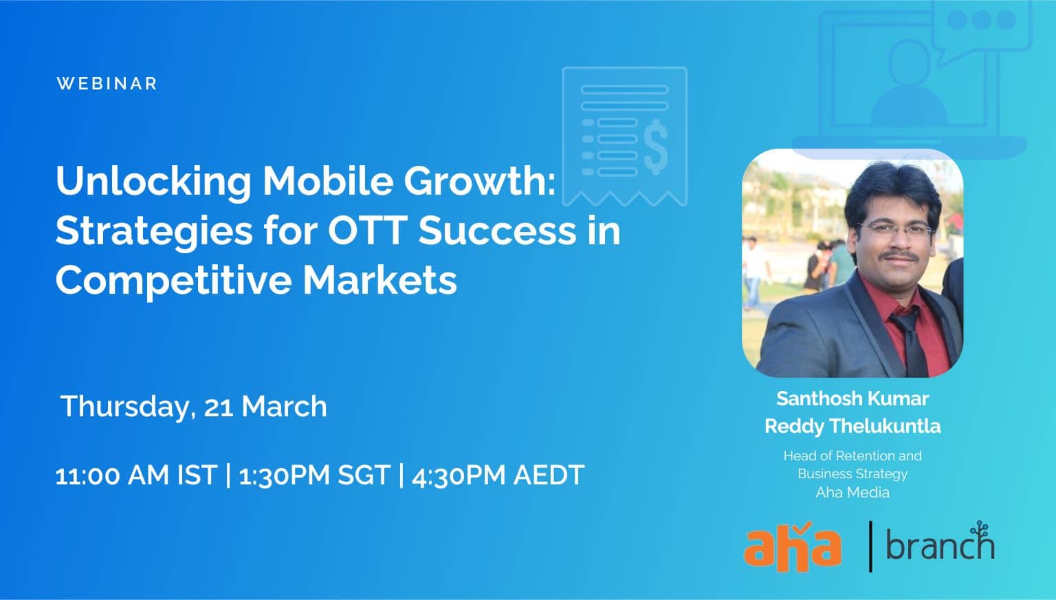 Join us for an exclusive webinar where aha media, an OTT platform shares tricks and tips on how to acquire and engage your app audience! Discover proven strategies to skyrocket mobile growth for video streaming apps, with a special focus on capturing audience attention during busy events like the Indian Premier League.